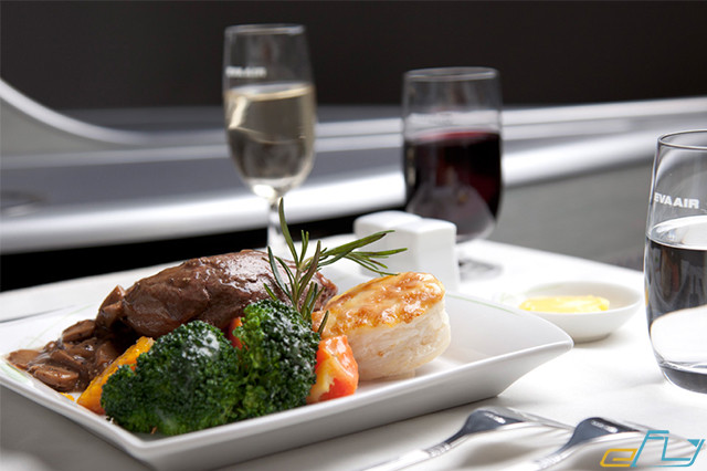 Hành khách hạng thương gia được cung cấp các suất ăn đa dạng từ các món Châu Âu đến Châu Á tùy theo điểm đến và loại máy bay. Hành khách có thể lựa chọn các món ăn phù hợp với sở thích. Ngoài ra, EVA Air cũng có các suất ăn đặc biệt như ăn chay, ăn kiêng, các bữa ăn cho trẻ và các suất ăn đặc biệt khác cho hành khách.
